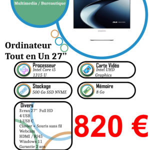 PC ASUS Tout En Un écran 27 pouces