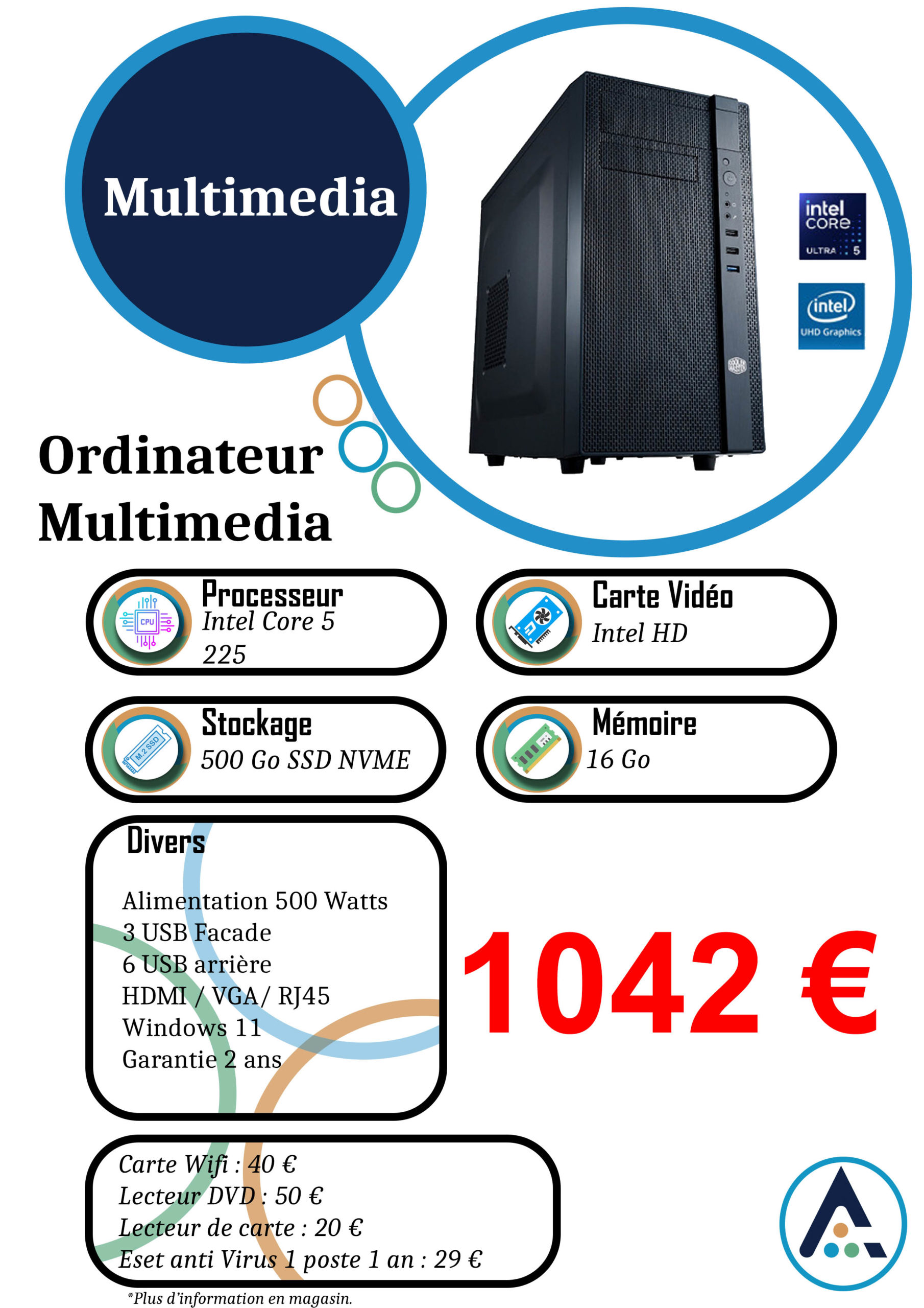 Idéal pour les particuliers, étudiants ou télétravailleurs recherchant un ordinateur silencieux, fiable et prêt à l’emploi.